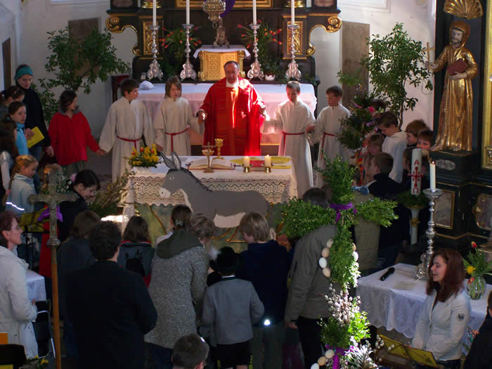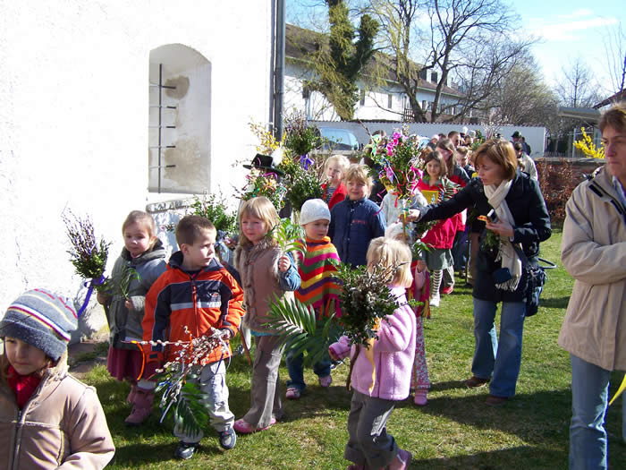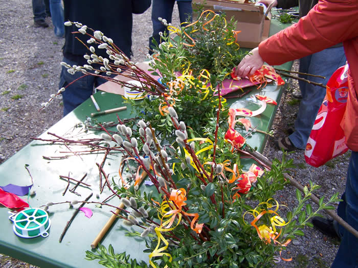 um aus den Weide- und Buchszweigen prächtige Palmbuschen zu binden.