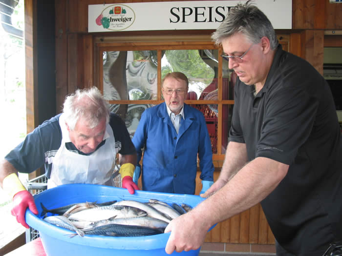 Auch dieses Jahr war die Wettervorhersage nicht eindeutig, Gewitter waren angesagt und 480 Fisch vorbereitet.