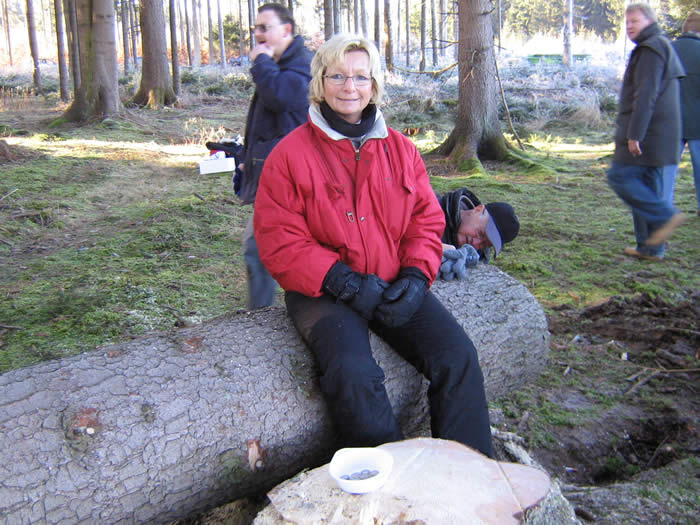 75 Jahresringe wurden gezählt und Gabi Hartmann gewann die Wette, wie alt der Baum ist.